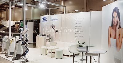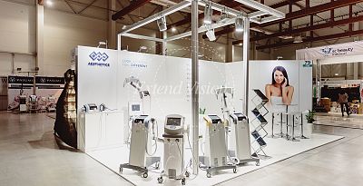 Minimalist and maintained in white. This is how the stand created for Aesthetic Pharma at the LNE Fair in Krakow looks like. A characteristic feature of this project is the open space, which not only introduces the effect of harmony, but also makes the exhibitors have easier contact with the client.